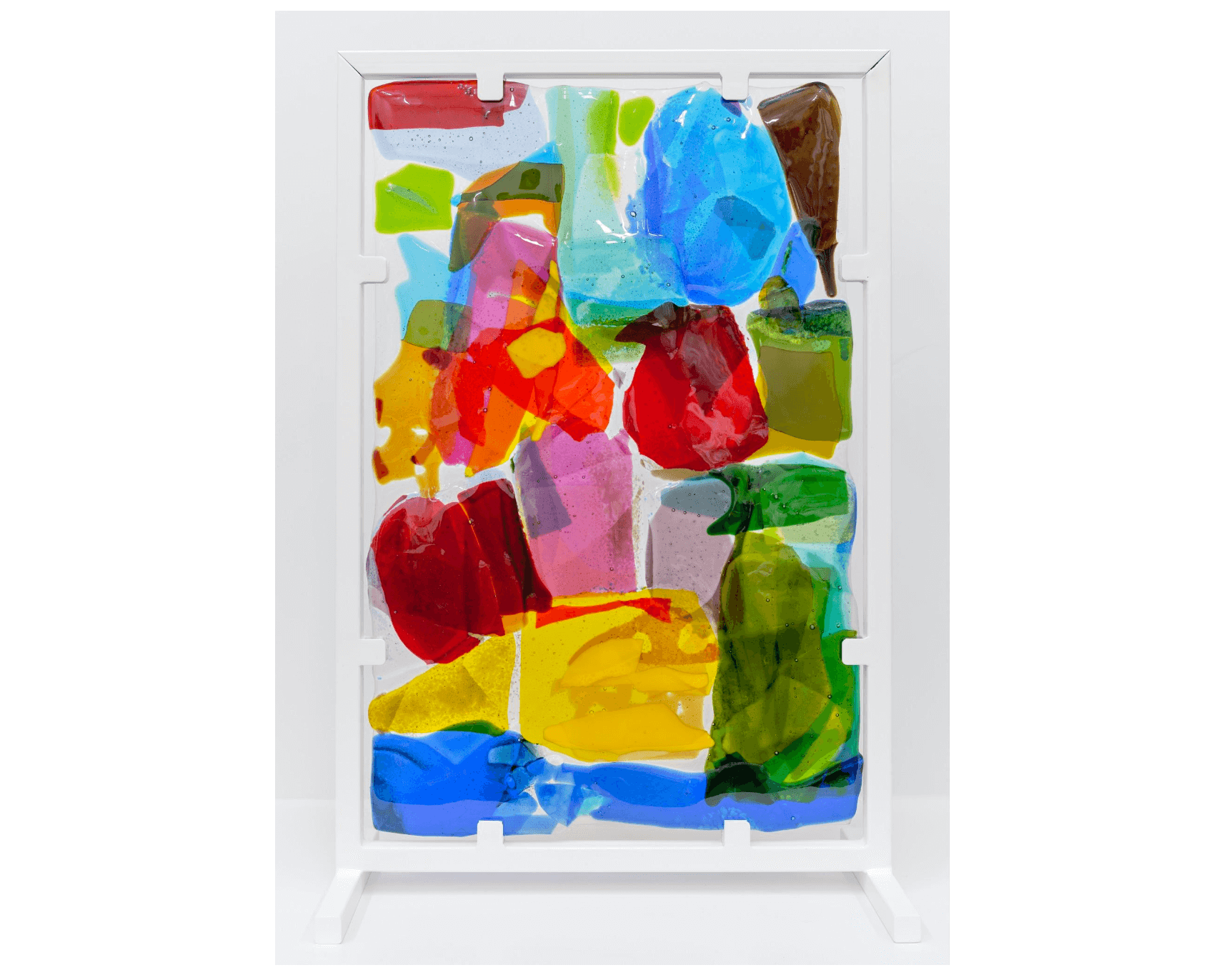 Marley Freeman, ice glistens, 2023. Fused glass 30 ¼”  x 19 ½”  x ⅝”. Photo courtesy of the artist.