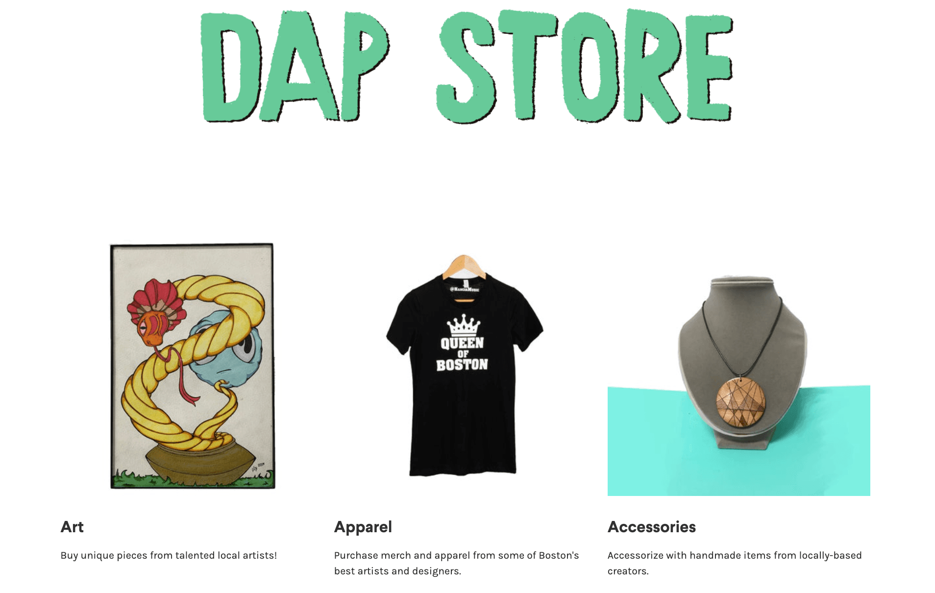 Homepage from the DAP Store Online. Image courtesy Dorchester Art Project.
