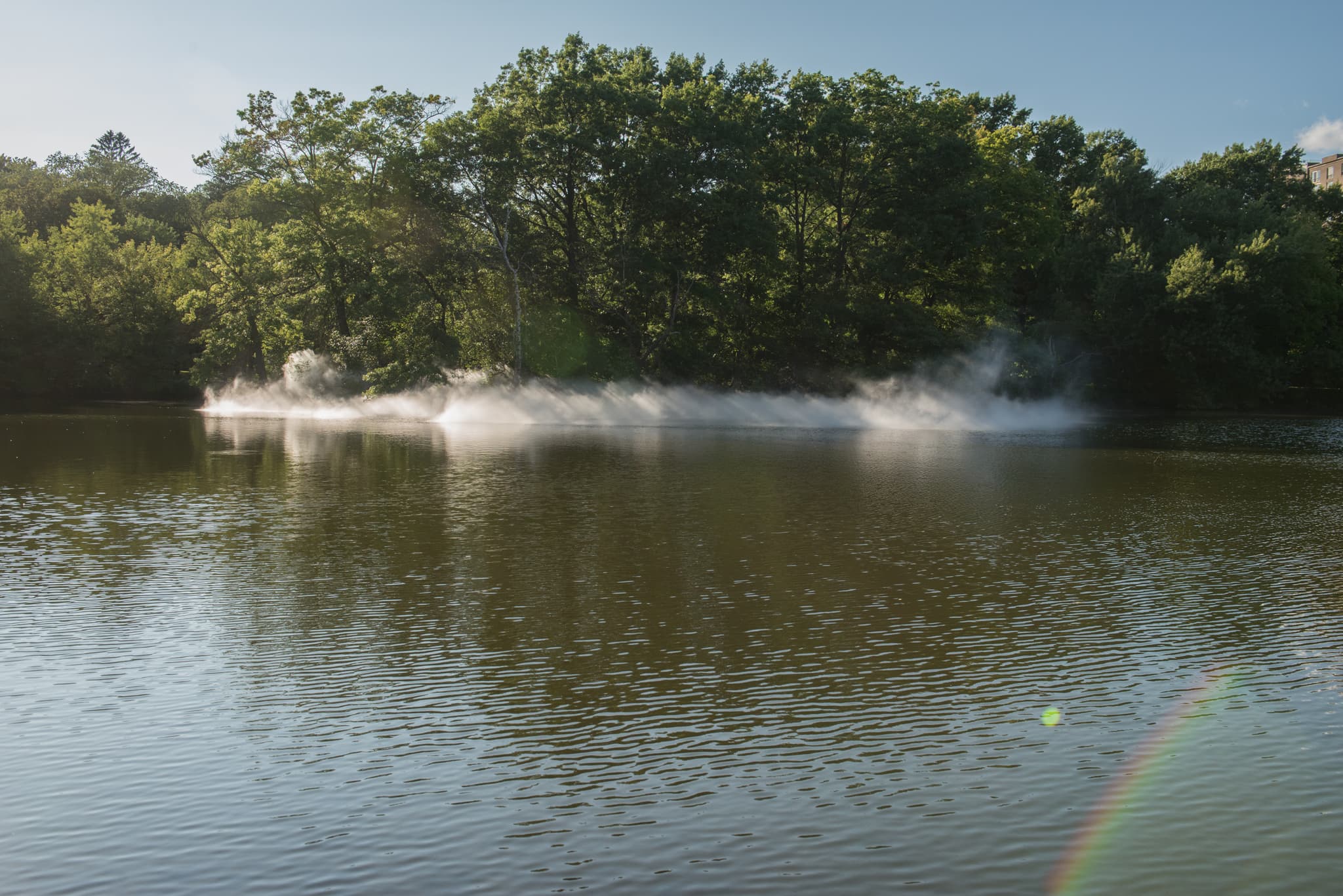 Fog x FLO’s Fog x Island, Leverett Pond, Boston, 2018. Image by Melissa Ostrow courtesy of Emerald Necklace Conservancy.